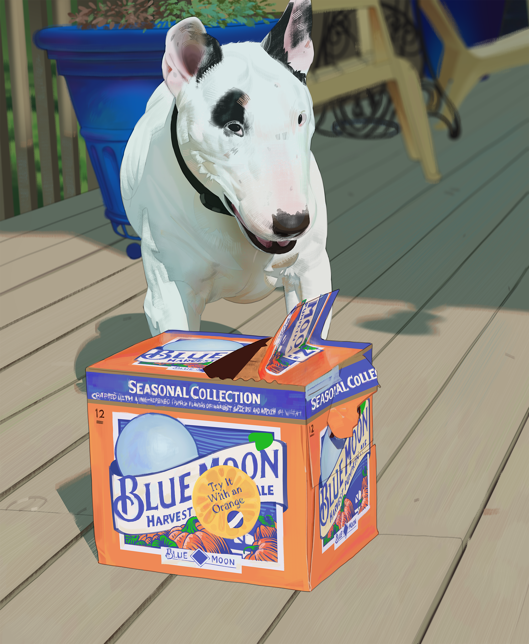 The making of “Moon” was a new and exciting experience. For years now, I’ve had practice working on digital illustrations for a range of clients. Being able to take those skills and apply it to pet portraiture presented new challenges, and allowed for the use of techniques unique to the digital medium. I had a blast working on this one, thanks Tris!